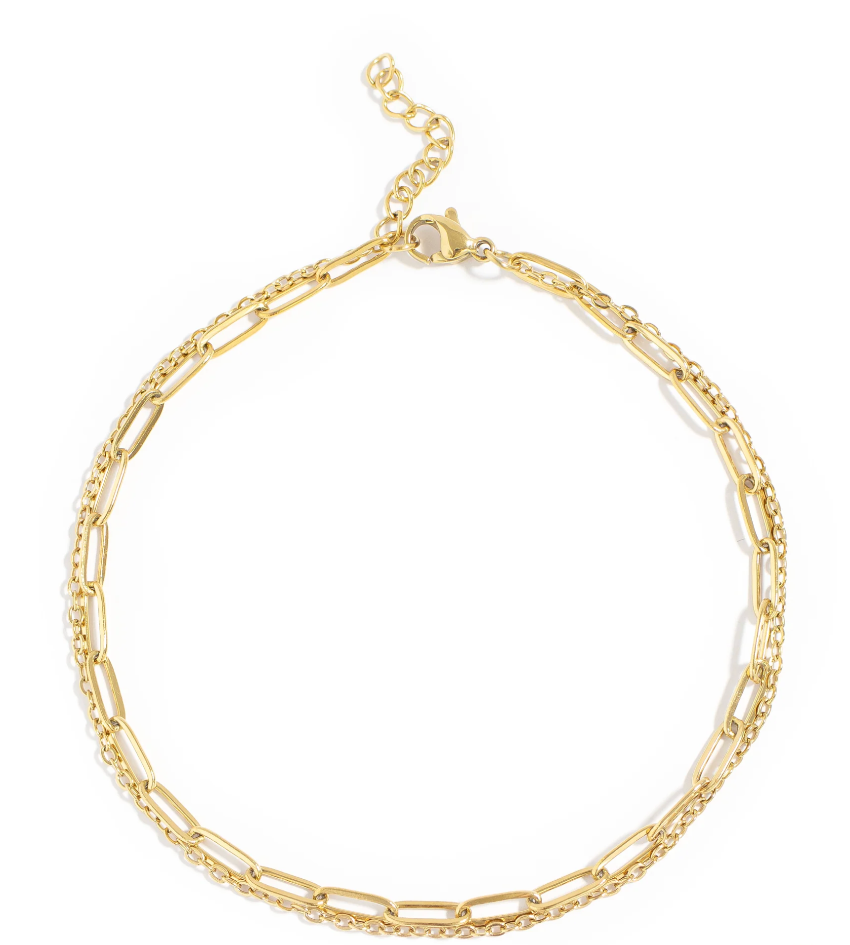 The dual-chain silhouette adds subtle movement and texture, creating a refined yet effortless statement along the ankle.